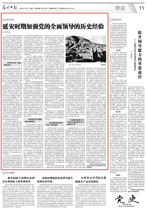 习近平总书记强调,坚持和加强党的全面领导,关系党和国家前途命运,我们的全部事业都建立在这个基础之上,都根植于这个最本质特征和最大优势。回望党的百余年奋斗历程,中国人民和中华民族之所以能够扭转近代以后的历史命运、取得今天的伟大成就,最根本的是有中国共产党的坚强领导。正如毛泽东同志曾指出的:“指导伟大的革命,要有伟大的党。”延安时期,中国共产党不仅坚持对抗日民族统一战线的领导权,同时加强了对抗日根据地的全面领导,在如何加强党的全面领导上积累了重要的经验。