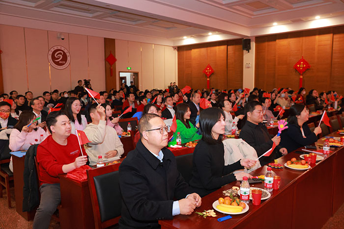 在二层报告厅举办2025新年联欢会。院党组全体成员及全院职工200余人齐聚一堂,以多种艺术形式抒发爱国情怀,展现团结和谐、积极向上的精神风貌。