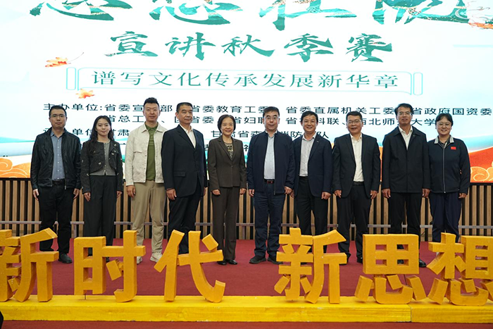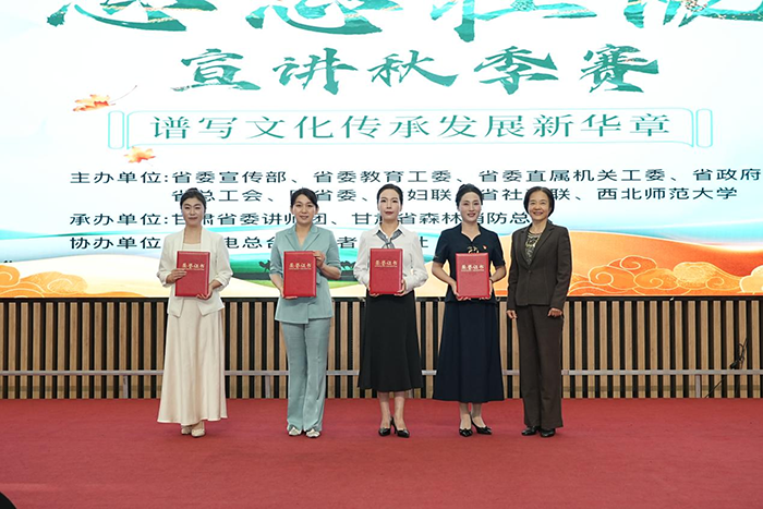 9月26日,在“新思想在陇原”宣讲秋季赛决赛和“京、浙、青、陇五省(市、区)青年说”宣讲“走亲”活动中,调研组先后观看了18个宣讲员(组)的宣讲,亲身体验全国丰富多彩的理论宣讲活动。肖峻峰团长担任决赛评委,并为获得优秀奖的宣讲员颁发证书。