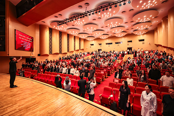 此次报告会还特别设置了“向英烈和先辈致敬”环节,通过AI技术制作的视频让英烈形象“穿越时空”,与北京、乌海的观众“对话”,共同感受“今日中国,如你所愿”的盛世图景。宣讲结束后,现场观众齐声高唱《没有共产党就没有新中国》,令人心潮澎湃。此刻的歌声不仅是情感的抒发,更是新时代下红色基因传承的创新范式。