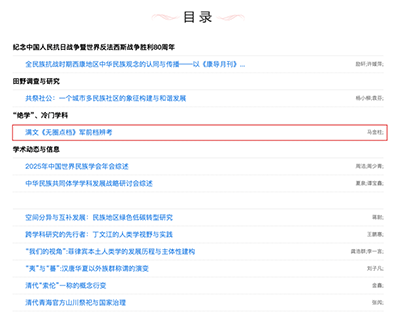 满学研究所马金柱助理研究员在AMI顶级期刊《民族研究》2025年第5期发表学术文章《满文<无圈点档>军前档辨考》。