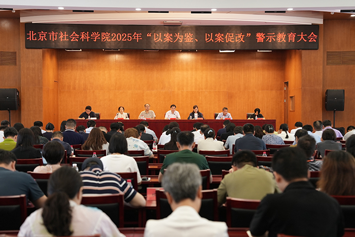 召开"以案为鉴、以案促改"警示教育大会,党组书记谢辉强调,要深入落实全市和宣传系统警示教育大会精神,锲而不舍贯彻中央八项规定精神,坚持以彻底的自我革命精神推进作风建设,纵深推进全面从严治党,为打造首都新型高端智库、建设贯彻落实习近平文化思想首善之区、奋力谱写中国式现代化北京篇章贡献"北京社科"力量。党组副书记、院长贺亚兰主持会议。院领导班子成员出席会议。机关党委委员、机关纪委委员及全院党员干部参加。驻市委宣传部纪检监察组副组长杨齐、一级调研员张志杰到会指导。