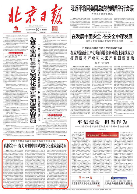 10月30日,《中国社会科学报》《北京日报》分别刊发《为全面深化中国式现代化实践贡献社科力量--社科界积极学习宣传贯彻党的二十届四中全会精神》《首都干部群众热议党的二十届四中全会公报--真抓实干 奋力开创中国式现代化建设新局面》两篇报道,反映全国社科界和首都各界干部群众学习宣传贯彻党的二十届四中全会精神情况,其中刊登星天地娱乐城