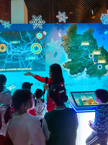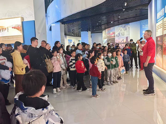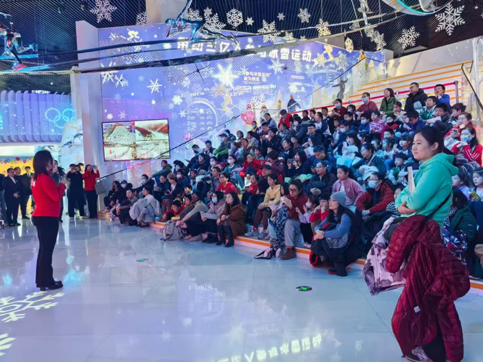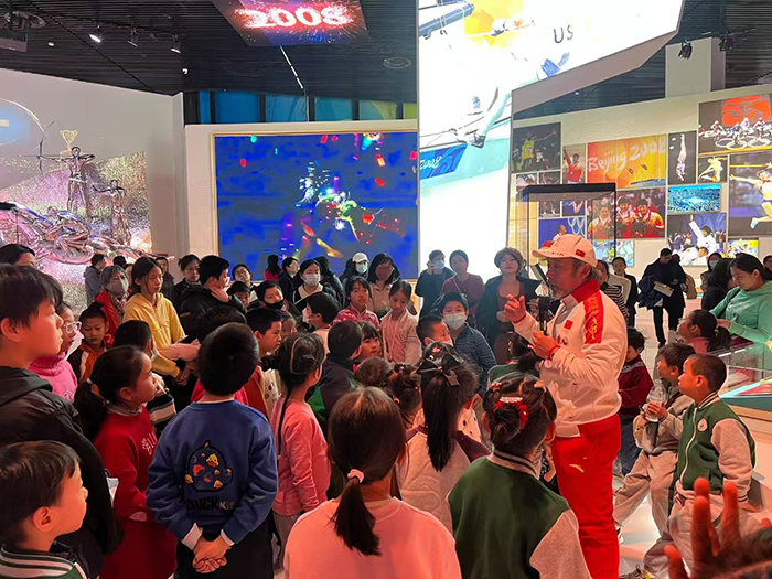 4位北京冬奥精神宣讲团成员结合不同的展览场景定点讲述,普及冬奥知识,传播奥运精神,为建设体育强国贡献“双奥之城”力量。北京首钢园运动中心运营管理有限公司制冰师刘博强,讲述了他从首钢轧钢工转型成为制冰师,在北京冬奥会申办、筹办、举办期间保障国家队四年的训练和赛事制冰工作,成为北京冬奥会火炬手,并参加北京冬奥会冰壶项目的制冰和赛事保障工作的故事;原北京冬奥组委规划建设部工作人员桂琳,作为一名城市规划师,通过亲身经历,讲述了冬奥会三个赛区场馆和京张高铁建设,带给北京城市发展和京津冀协同发展巨大的带动作用;原北京冬奥组委开闭幕式工作部工作人员刘新华,讲述了“大雪花”的故事,揭秘了北京冬奥会开闭幕式的创意初衷以及筹备过程的奋斗故事;小学体育教师、双奥火炬手周晨光,讲述了以北京夏奥会到北京冬奥会为基础,创造性将模拟奥运会、模拟冬奥会带入校园的故事。