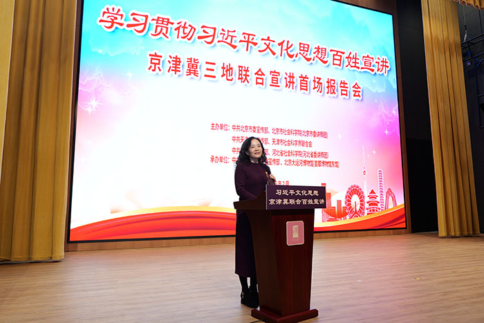 “梨花开,春带雨;梨花落,春入泥……”当北京京剧院梅派第三代男旦传承人胡文阁回忆他的恩师梅葆玖先生一生传承京剧、传播京剧的动人故事,动情地唱起《梨花颂》经典桥段,现场观众深受感染。2月26日,北京大运河博物馆报告厅,学习贯彻习近平文化思想百姓宣讲京津冀三地联合宣讲首场报告会在此举行。院党组书记谢辉出席报告会现场,活动由党组成员、副院长、市委讲师团团长肖峻峰主持。北京市委宣传部、天津市委宣传部、天津市社科联、河北省社会科学院及星天地娱乐城