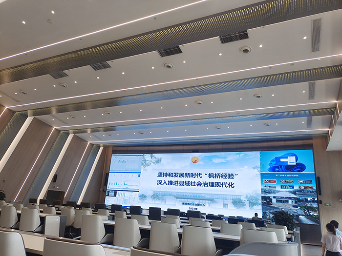 在诸暨市社会治理中心,同志们现场了解了“综合受理区”、“法律服务区”、“来访接待区”、“调解服务区”、“仲裁服务区”和“诉讼服务区”的运作,在综合信息指挥中心现场观摩了综合信息指挥平台的运行,了解了平台相关模块的数据及运用。