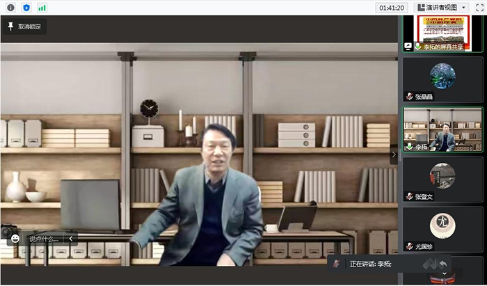 李拓教授围绕“党的二十大报告的若干重大理论创新”指出,党的二十大开启了全面建设社会主义现代化国家的冲锋号,为建设社会主义现代化强国提供了科学指南。报告立意高远,思想深邃,全面总结了新时代十年的伟大变革,吹响了建设社会主义现代化强国的号角,对于实现中华民族的伟大复兴具有重要的指导意义。李拓教授充分肯定改革开放以来所取得的巨大成绩,同时也指出我们所面临的国际环境的复杂性,尤其是在百年未有之大变局的历史背景下,如何破除“历史终结论”的思维定式,持续深化改革开放,引领世界未来发展潮流显得尤为重要。按照报告的主体框架和逻辑结构,遵循总论与分论相结合的分析思路,李拓教授系统阐释了二十大报告的新论断新思想,主要包括三个务必、三件大事、第二个答案、归根到底是两个“行”、党的中心任务、五个重大原则和中国式现代化等十四个方面内容,从而立体化地呈现了马克思主义中国化时代化的最新成果。在此基础上,李拓教授又从历史和实践相结合的高度,阐述全面建设社会主义现代化强国的首要任务、战略性支撑以及题中应有之义,凸显了高质量发展、全过程人民民主和全面依法治国对于建设国家治理体系和治理能力现代化的重大意义。最后,李拓教授立足于二十大报告的结论,进一步总结作为世界上最大的马克思主义执政党,必须时刻保持解决大党独有难题的清醒和坚定,持之以恒全面推进从严治党,以党的自我革命引领社会革命,秉持以人民为中心的发展理念,不断推动中国特色社会主义巍巍巨轮乘风破浪、行稳致远。