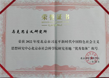 马克思主义研究所获得北京市习近平新时代中国特色社会主义思想研究中心星天地娱乐城 研究基地2022年度“优秀集体”和“优秀个人”两项荣誉