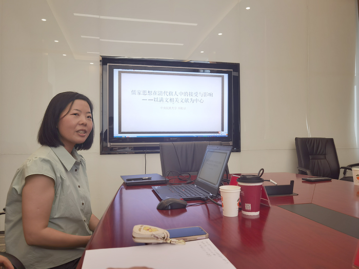 6月26日下午,满学所举办2024年第3期"满学青年沙龙"。本期"满学青年沙龙"主讲人是中央民族大学中国少数民族语言文学学院顾松洁老师,题目为《儒家思想在清代旗人中的接受与影响--以满文相关文献为中心》,满学所晓春副研究员担任主持人。