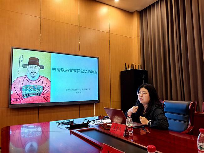 满学研究所王美珏博士,题目为“明清以来文天祥记忆的流变”。沙龙由满学研究所所长常越男研究员主持,中国社会科学院古代史研究所邱源媛研究员担任评议专家。满学研究所全体科研人员参加了此次学术活动。