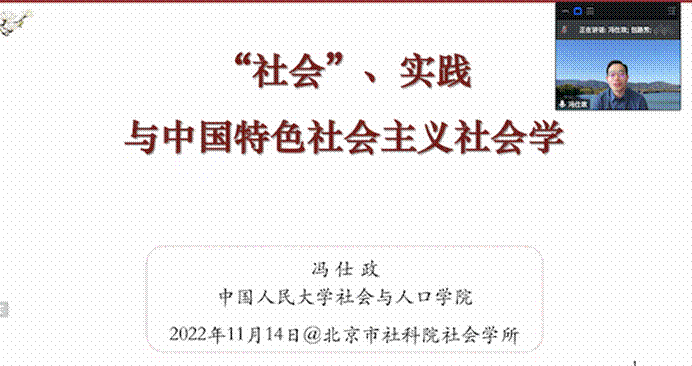 2022年11月14日下午,社会学所在线举办了第六期群学沙龙活动。本次沙龙邀请了中国人民大学社会与人口学院院长冯仕政教授,以《“社会”、实践与中国特色社会主义社会学》为主题分享了研究经验与思考。此次沙龙由社会学所所长包路芳研究员主持,社会学所全体科研人员参加了交流讨论。