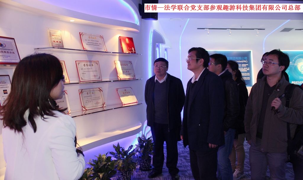 座谈会结束后,市情—法学联合党支部成员在政府研究室赵恩国主任的陪同下赴石景山高科技产业园区,参观了趣游科技集团有限公司和北京东方信联科技有限公司。趣游公司是中国网页游戏中的龙头企业,主要开展网页游戏专业研发及运营。成立三年多来,公司实现了跨越式发展,现有员工1500多人,经营内容集互动娱乐业务、移动互联网增值业务及海外游戏运营业务于一体,并通过旗下的网站平台,打造成中国最大的网页游戏运营平台集群。党支部成员参观了趣游的开放式办公区域、趣游荣誉室、集团员工休闲娱乐中心。在参观过程中,党支部成员就自主创新模式、全球化战略构想、游戏文化理念与未来发展等内容石景山区相关领导开展了广泛的交流。