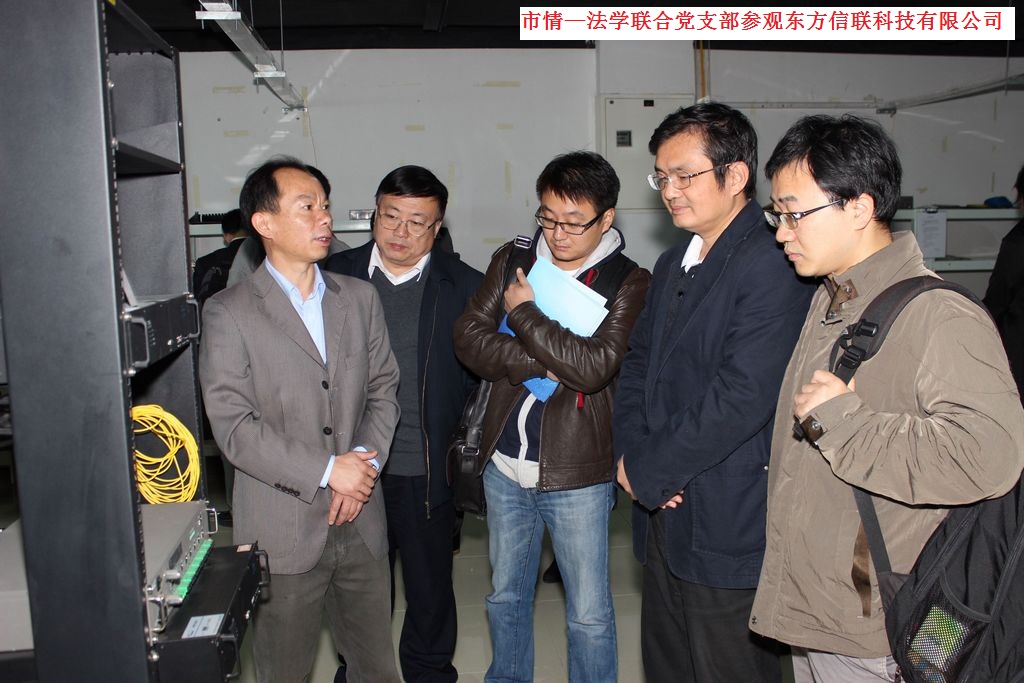 东方信联科技有限公司是专业从事无线通信系统应用解决方案及相关设备开发的国家高新技术企业,拥有8个系列400余种完全拥有自主知识产权的产品,在无线技术的有源设备、微波有源部件,无源器件和专用无线技术等领域处于国内领先水平,公司已在美国Nasdaq股票交易市场上市。公司领导向党支部一行简要回顾了公司发展历程,就公司在“三网融合”应用上取得的最新成果——“信联智慧驻地系统”进行了详细介绍,党支部成员也就该技术的先进性、关键技术难度、应用现状以及信息技术与社会科学相结合前景进行了深入探讨。