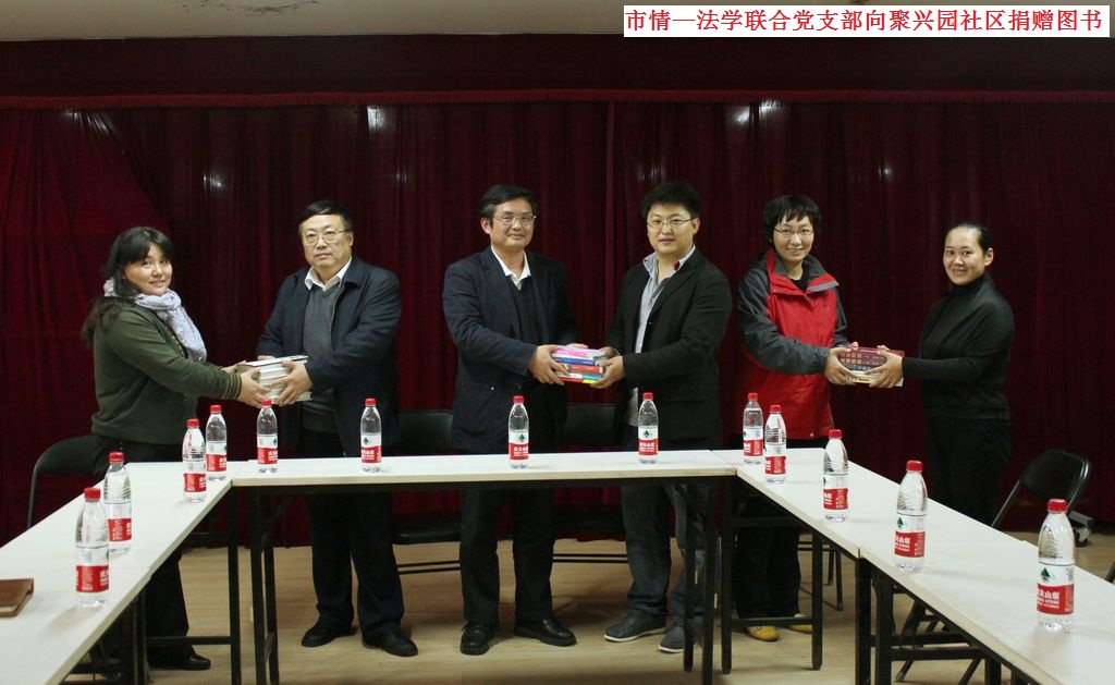 党支部成员接着又赴聚兴园社区,为社区图书站赠送爱心图书。此次向社区赠送的书籍达200多本,全是由党支部成员自发捐赠,内容上注重文化性、科学性、趣味性有机的统一,种类包括学者传记、历史文化、世界名著、生活指南等。社区居委会主任对市情-法学党支部的捐赠表示衷心的感谢,社区工作人员接过一撂撂崭新的图书后,连声道谢,纷纷表示一定会管好、用好、发挥好图书的作用,为聚兴园社区营造一个良好的读书氛围。