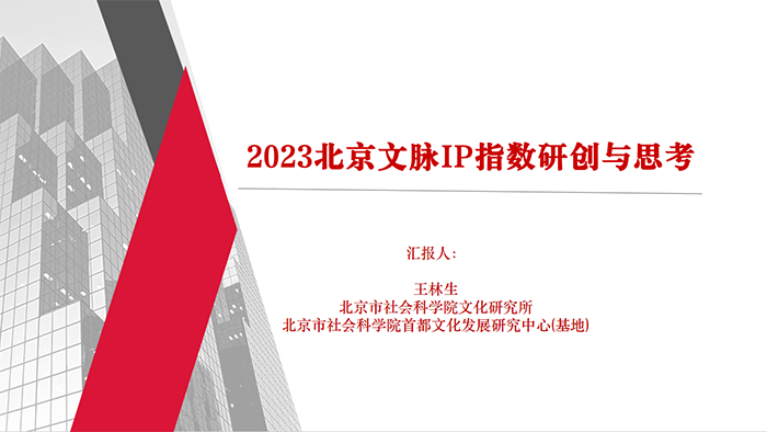 会议在宽松和愉悦的氛围中开始。王林生副研究员向与会专家介绍了本次研讨会的背景,以及依托"京脉云"大数据平台开展的《2023年北京文脉IP指数报告》的研创等相关情况,从指数排行、指标解读和案例思考等层面介绍了2023年北京文脉IP指数的整体情况,并探讨了上半年指数与下半年指数的变化。