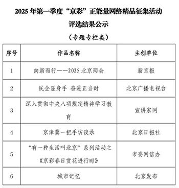网络宣传处推送作品入围2025 “京彩”正能量网络精品征集活动