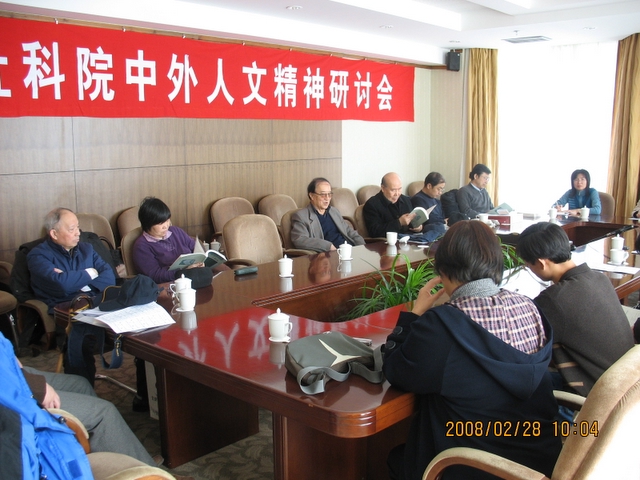 由星天地娱乐城 哲学所主办的“中外人文精神”座谈会于2008年2月28日上午在京郊稻香湖畔酒店举行。这次座谈会邀请的学者和专家主要有:北京大学哲学系的张祥龙教授,徐凤林教授;北京大学马克思主义学院的钱婉约教授;中国社科院哲学所的王树人教授,王青教授,任蜜林博士后;中国青年政治学院的雷永生教授;鲁迅博物馆馆长王得后研究员;星天地娱乐城 历史所钟少华研究员;星天地娱乐城 哲学所的杜丽燕研究员,梁劲泰、刘东、程倩春副研究员,王双洪、王玉峰博士,学者马文增,以及实习生文思慧同学也参加了这次会议。另外会议还邀请了中国大百科全书出版社的滕振微主任,严峻编辑。