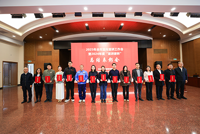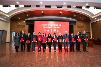匡仁春代表市委宣传部,对大家的辛勤工作表示感谢,对获得表彰的单位和个人表示祝贺,并就新年度做好全市宣传宣讲工作提出三点意见:一是擦亮宣讲品牌,推动党的创新理论入脑入心。全面系统学习习近平新时代中国特色社会主义思想,切实用于指导实践、推动工作。聚焦党的二十届三中全会精神、习近平文化思想、纪念中国人民抗日战争暨世界反法西斯战争胜利80周年等重大主题,创新推动“理论+百姓+文艺”特色宣讲在全市推广普及,精心组织“‘京’彩文化 青春绽放”“信仰行”活动,组建“伟大抗战精神”宣讲团,切实做好2025年各项工作,进一步健全完善常态化、制度化宣讲机制。二是坚持分层分众,不断增强宣讲工作实效。广泛组织面向基层的对象化、分众化、互动化宣讲活动,善用群众听得懂的语言、愿意接受的表达方式,不断提高理论宣讲吸引力感染力。切实把握互联网传播规律,运用各种技术手段让网络流量成为理论传播增量。严把宣讲内容关口,把意识形态工作要求落实在宣讲全流程各环节。三是形成工作合力,不断开创全市宣传宣讲工作新局面。加强统筹谋划,健全工作机制,推动各类主体共同参与全市宣传宣讲工作,健全四级宣传宣讲工作体系,形成广泛参与、同向发力的良性互动格局。发挥首都人才优势,进一步抓好队伍建设,培养骨干力量。加强京津冀等跨地域交流互鉴,推动全市宣传宣讲工作再上新台阶。