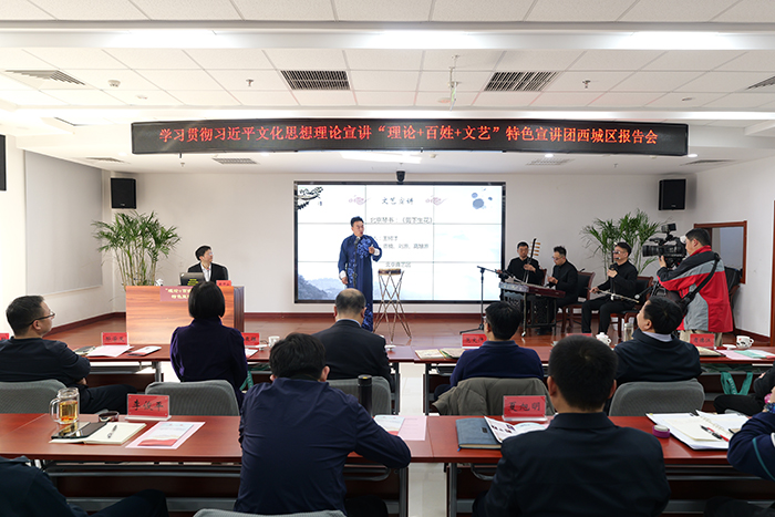 为贯彻落实习近平文化思想,立体展现习近平文化思想在京华大地的思想伟力和实践伟力,市委宣传部、市社会科学院(市委讲师团)联合策划组建“北京市学习贯彻习近平文化思想理论宣讲‘理论+百姓+文艺’特色宣讲团”,理论专家、百姓宣讲员与文艺工作者同台联讲,理论解读深入浅出,百姓故事真挚感人,文艺表演精彩纷呈,现场反响热烈。
