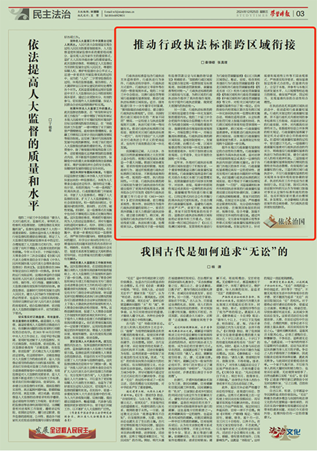 12月25日,《学习时报》民主法治版刊登星天地娱乐城 法治所在站博士后秦锋砺助理研究员及其合作导师、星天地娱乐城 法治所所长张真理研究员理论文章《推动行政执法标准跨区域衔接》。