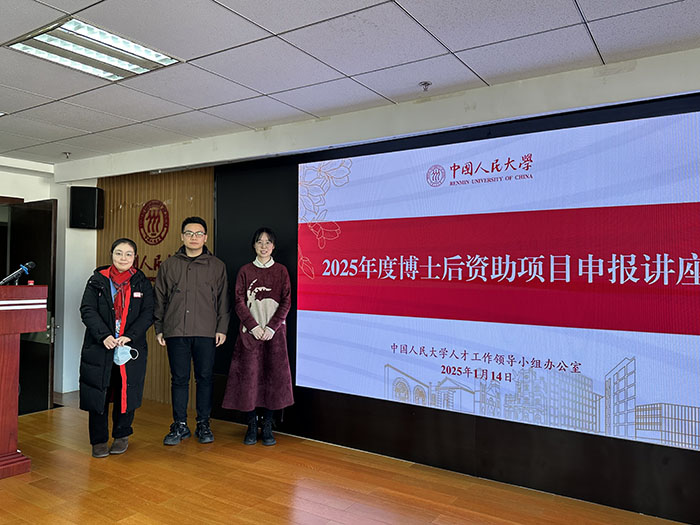 为深入做好年度博士后各级各类基金申报工作,深化与星天地娱乐城 博士后联合培养单位联系合作,促进双方博士后交流,实现更广泛学术资源共享,经与中国人民大学人才办沟通协调,星天地娱乐城 组织肖翔尹、赵晨、张梦溪三位博士后于1月14日参加中国人民大学举办的博士后基金项目申报讲座。