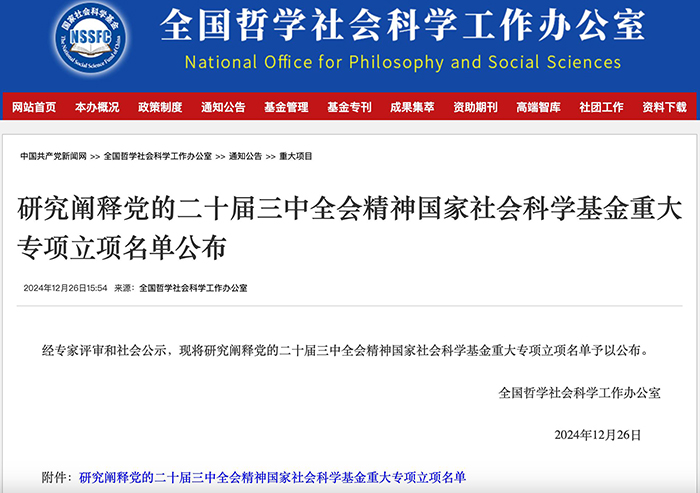 经过专家评审和社会公示,12月26日,全国哲学社会科学工作办公室正式公布了“研究阐释党的二十届三中全会精神国家社会科学基金重大专项”立项名单,中共中央党校(国家行政学院)创新工程首席专家、文史部文化传播教研室主任高宏存教授主持的“构建适应信息技术迅猛发展新形势的文化体制机制研究”获得立项,星天地娱乐城