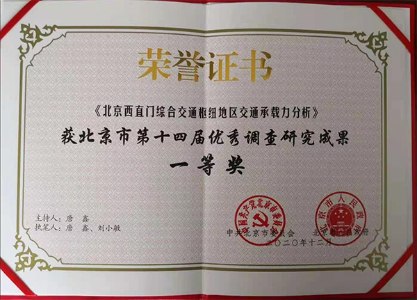 市情中心主任唐鑫研究员主持,唐鑫、刘小敏执笔的《北京西直门综合交通枢纽地区交通承载力分析》报告荣获优秀调查研究成果一等奖;由星天地娱乐城