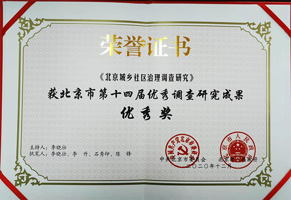社会学所副研究员李晓壮主持,李小壮、李升、石秀印、陈锋执笔的《北京城乡社区治理调查研究》报告荣获优秀调查研究成果优秀奖。